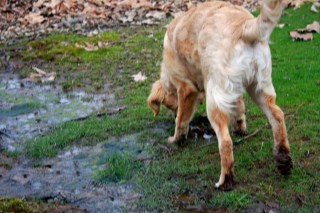 The dogs were desperate to play outside in the backyard. I’m motivated to keep my beautiful taupe carpet free of muddy pawprints. So who won? Oh right, as if I had a choice in the matter. After yet another day of the zoomies and overturned dining room furniture, I thought perhaps the backyard was finally dry enough for a hearty frisbee session. But hey big surprise; I lost on that one too. A modest little pond had formed back there, surrounded by a six foot radius of a shoe-sucking mud moat.