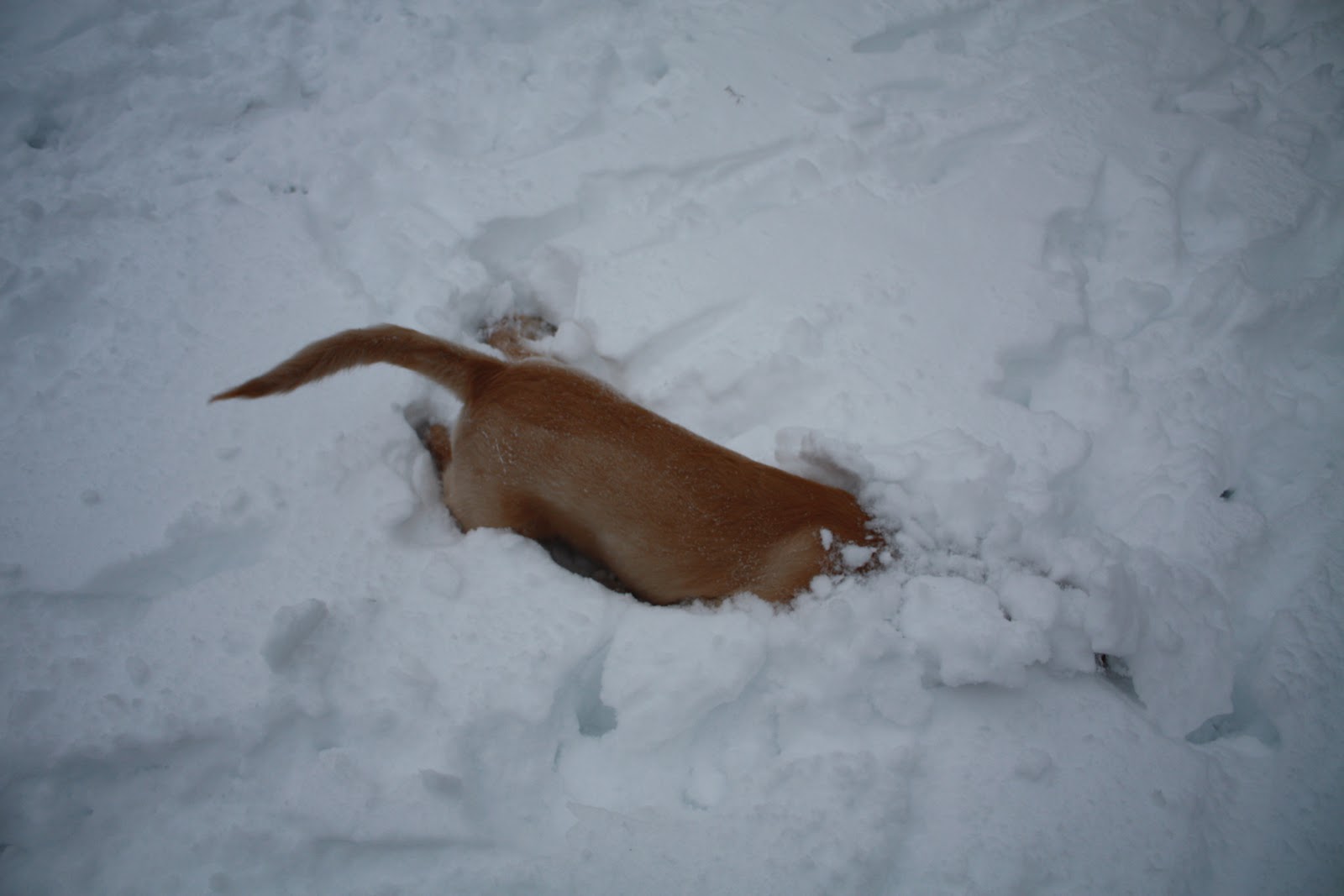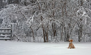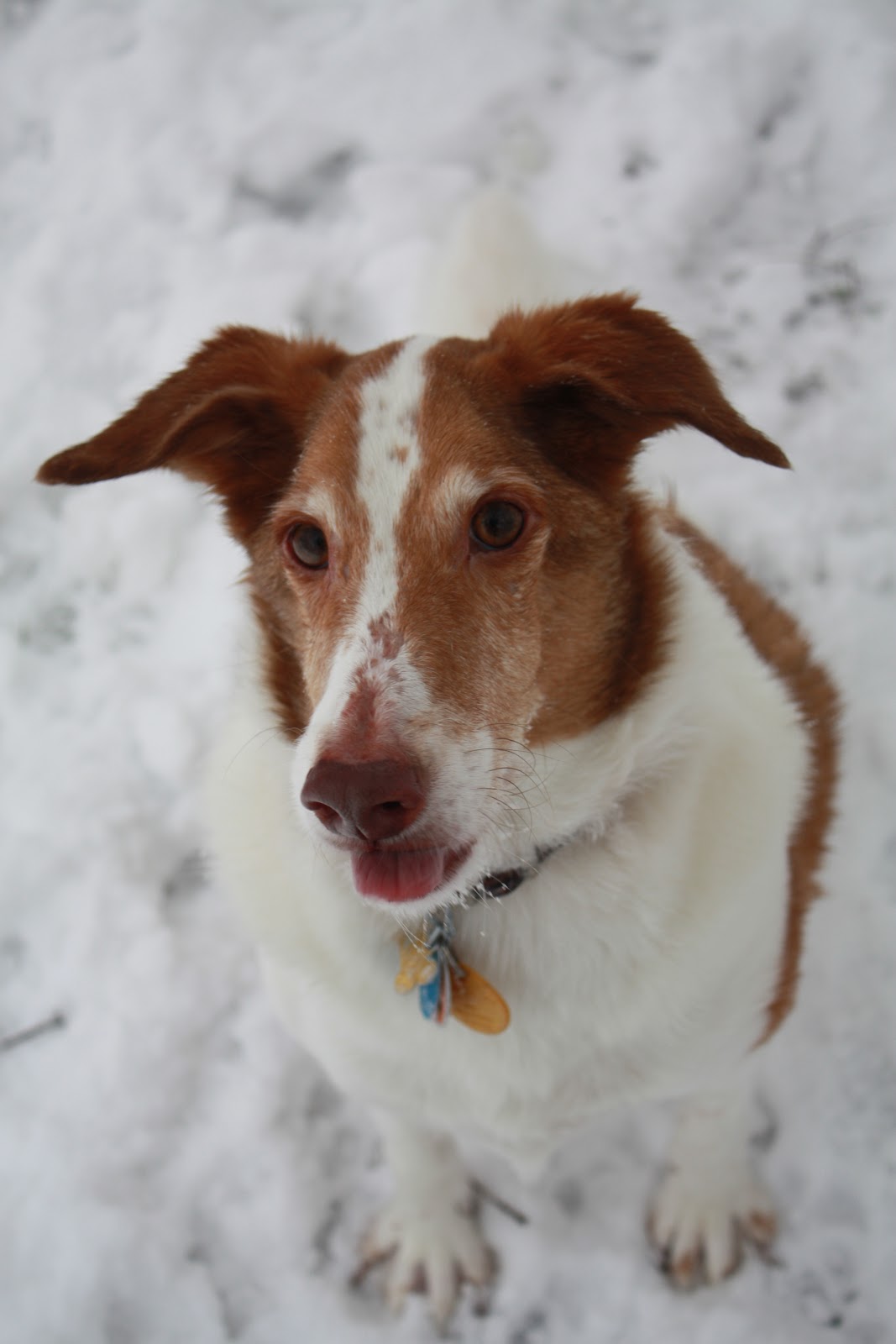 Good Lord. It’s true. It’s Micron at four months old. We got this shot of his adorable mug last February when we had a huge snowfall and let the boys run wild in the backyard.