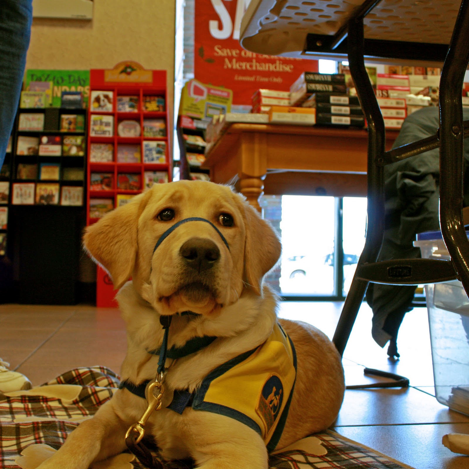 I did B&N with Dembre at Easton last Saturday for the morning shift. The manager kept on trying to get Dembre to lick her even after he was corrected a million times. Then she asked “Is he allowed to lick?” our answer “NO!” “Oh” and then she continues sticking her hand out for him to lick :P. My Mom and I were running the table and only wrapped 10 or so gifts over the course of FOUR hours. We never got our package of brochures to take so we took the ones we already had at home! It all worked out fine and was pretty fun.