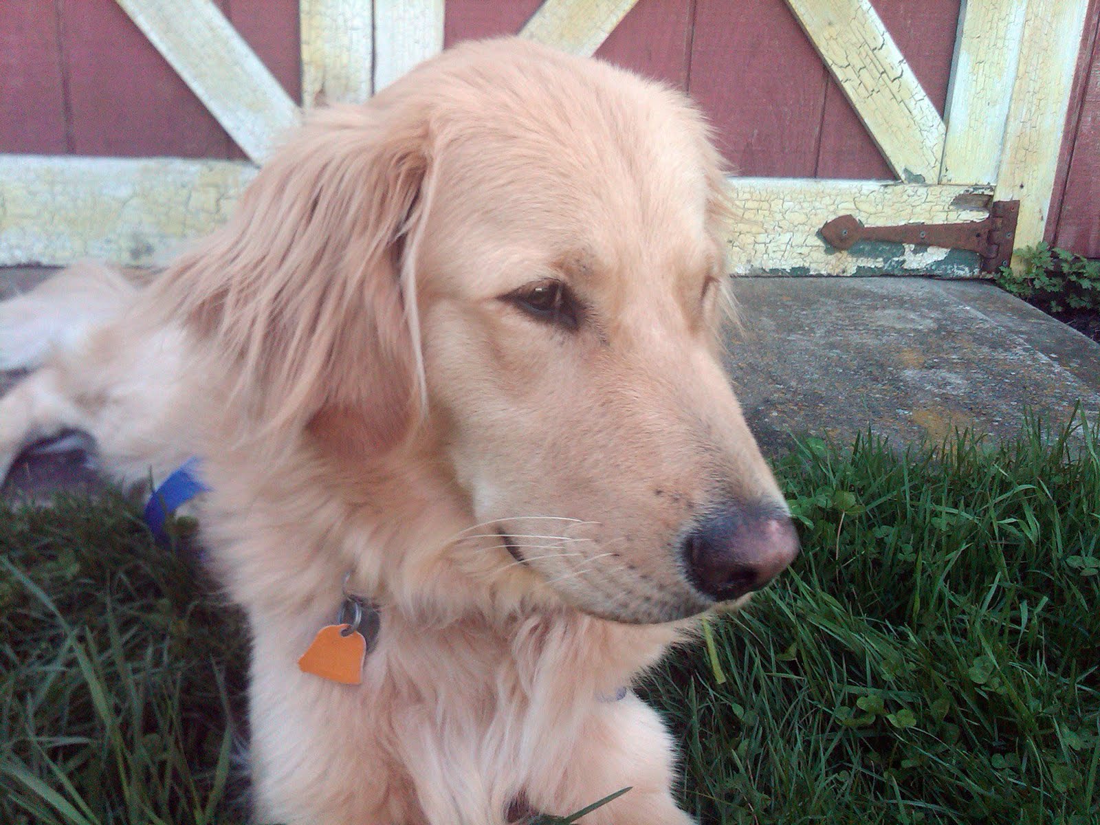 | Madias enjoying the country life (is that a John Deere collar?) |