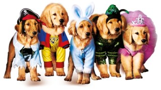 So we get one better. Yax puts his good looks up against all five golden retriever pups, plus a ghost beagle.