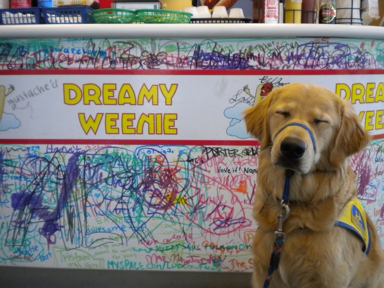 Or did he? Perhaps he is indeed enjoying a delicious tube steak daydream. If I had the ounce of talent it would take, I’d put a thought balloon over his head with a hot dog floating inside.