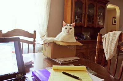 After he’s leapt onto the table to tip my coffee mug, Bodine settles his furry mass comfortably on my documents. Rather absent-mindedly, he bats about my pen with a lazy paw and asks, so whatcha doin’?
