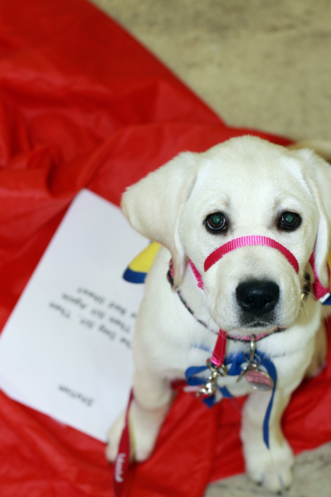 Wake up, Euka. We’re here. Euka blinks her eyes and looks out the car door to see what today’s adventure might be. She’s slept soundly during our road trip to the regional center for Canine Companions for Independence, but the the sights and smells have snapped her to attention. Discovering new stuff is caffeine for puppy brains.