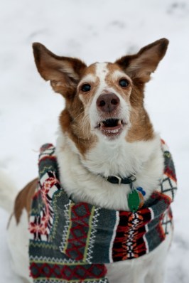 My thoughts? Considering his early diagnosis of dermatomyositis, a congenital condition that is seen in collies and Shetland sheepdogs, there’s a solid chance of Sheltie in there. And I can see it around his ruff, so that’s easy to believe. Then there’s the liver colored schnozzel pad and the orange spots that marks a Brittany spaniel.