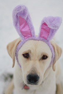 Happy Easter, Donna! Euka looks so big running with her bunny ears! Kisses and belly rubs from Melody and Hunter…