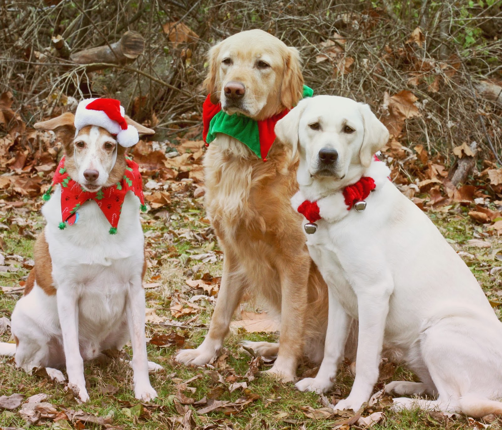 All that work just to end up with a bunch of photos of my trio of festive dogs in front of dry brush pile. This backdrop of dead grass and bare sticks isn’t emanating the aura of holiday cheer that I’m aiming for.