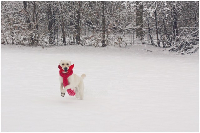 Just as gorgeous as she was last December, wouldn’t you agree? She would nearly blend into the snowscape like a winter fox if we didn’t have that red bow on her.
