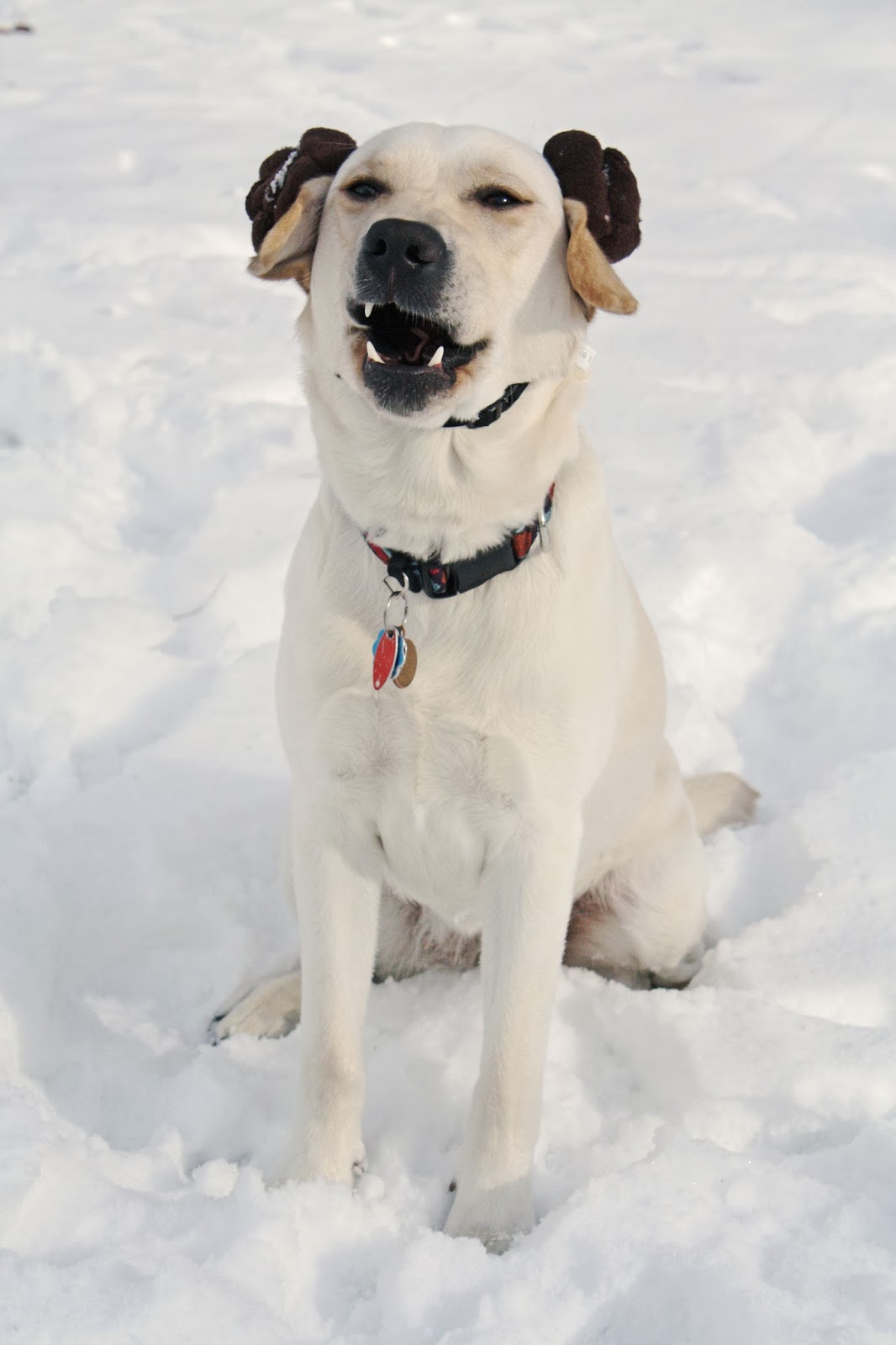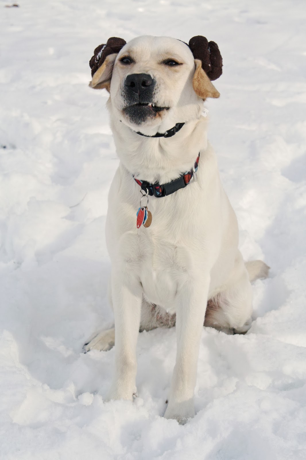 So anyway, Hoth. We messed around for a few minutes trying to scare up a white towel or blanket or something to drape over the princess’s shoulders to give her an Episode 4 Leia wardrobe. Then realized our pale beauty can pull off the look sans the good linens. Sure, like I’d have anything white around here anyway.
