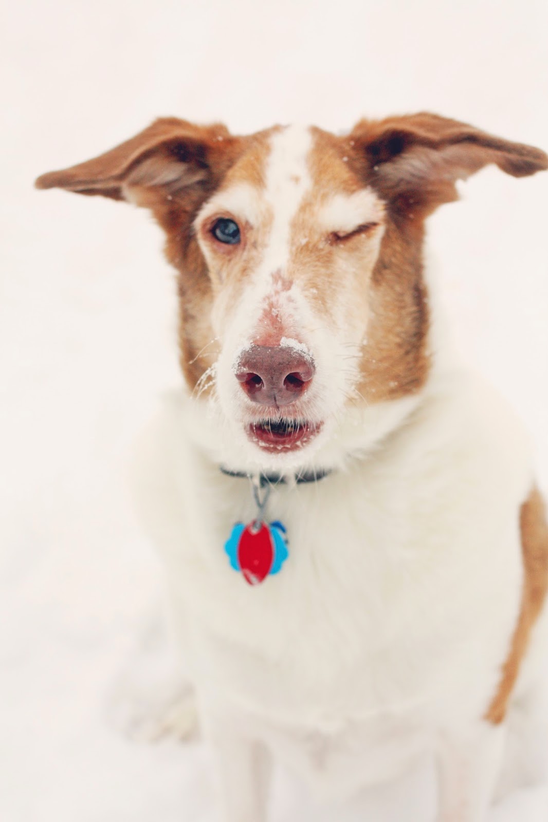 [sigh] The vet tells me it appears the dog bit his tongue and that’s likely where the blood came from. He could have been running, hit an icy patch and tumbled, she says. A full exam revealed no puncture wounds, just a cut on his tongue that is no longer bleeding.