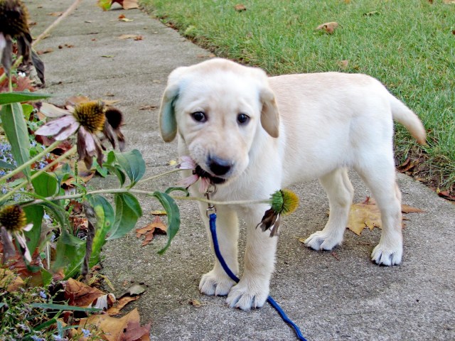 Now this was years before my puppy raising experiences made me a master of making canine bio spills disappear before you can blink twice. Think …think … what to do, but the obvious? Yes! I overturn a trash can, pull out the plastic garbage bag and just go to town, scooping up the most heinous part.