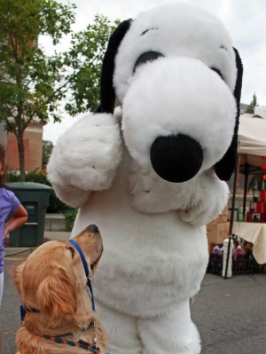 We meet a family, a mom and her two young girls, just outside the library. Is she working? asks the mom. She is, I said. But she’s here to learn proper greetings, too. Let’s have her sit and then she can be petted.