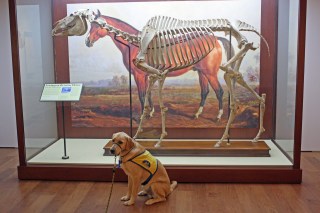 We stop for a photo op with a horse skeleton. A pretty novel object to check off the socialization list. You’re welcome, CCI.