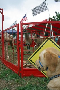 I kept an eye on the weather reports for this weekend. I wanted to bring Yax along for more exposure to crowds and novel items, but not if it were to be paw searingly hot. But reasonable temps in the Lexington forecast, just a threat of a thunderstorm or two. I have no worries about thunderstorms and this dog; he’s absolutely solid there. I got caught in a particularly nasty storm while driving a couple of months ago with Yaxley and Micron in the car. I pulled into a parking lot to wait it out. Just in time, too. A thunderclap hit so intense it shook our car and set off the car alarm in the vehicle next to us. The two dogs were laying in the backseat calmly wondering when dinner was going to be. Nice. I’ve had storm anxious dogs before and this is a welcome break from that drooling drama.