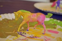 While the nieces take a few minutes to paint some horse models, Yaxley builds up his fan base.