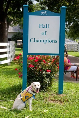 CCI pups are exempt from these rules, of course.* Despite what Euka thinks, she really doesn’t have a say in the decision. Her participation is mandatory, however I will leave it up to her on whether she enjoys the company of horses. Actually, I was pretty darn curious to see how she takes in these noble beasts. Could it be possible that our princess may get an equine assisted attitude adjustment?