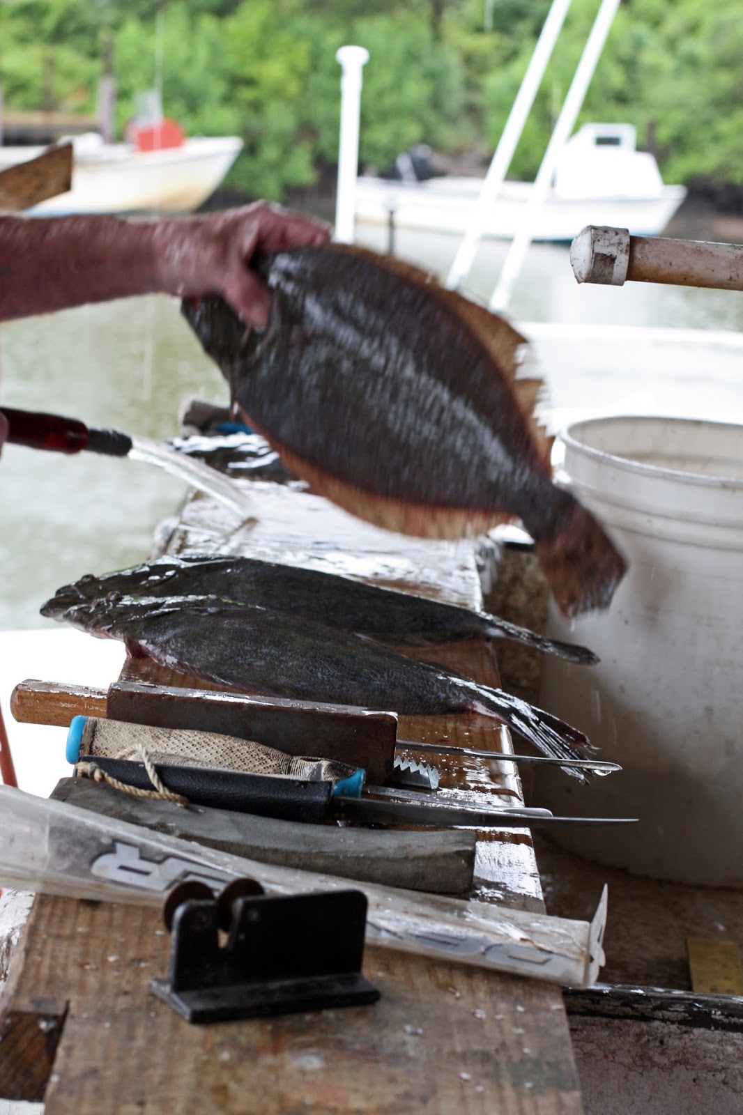 Aaron, Jr. will do that for ya, we’re told. There’s no one better, they say. We select some fine flounder to fillet, which means Aaron the Third held up some fish and I said, yeah those look good.