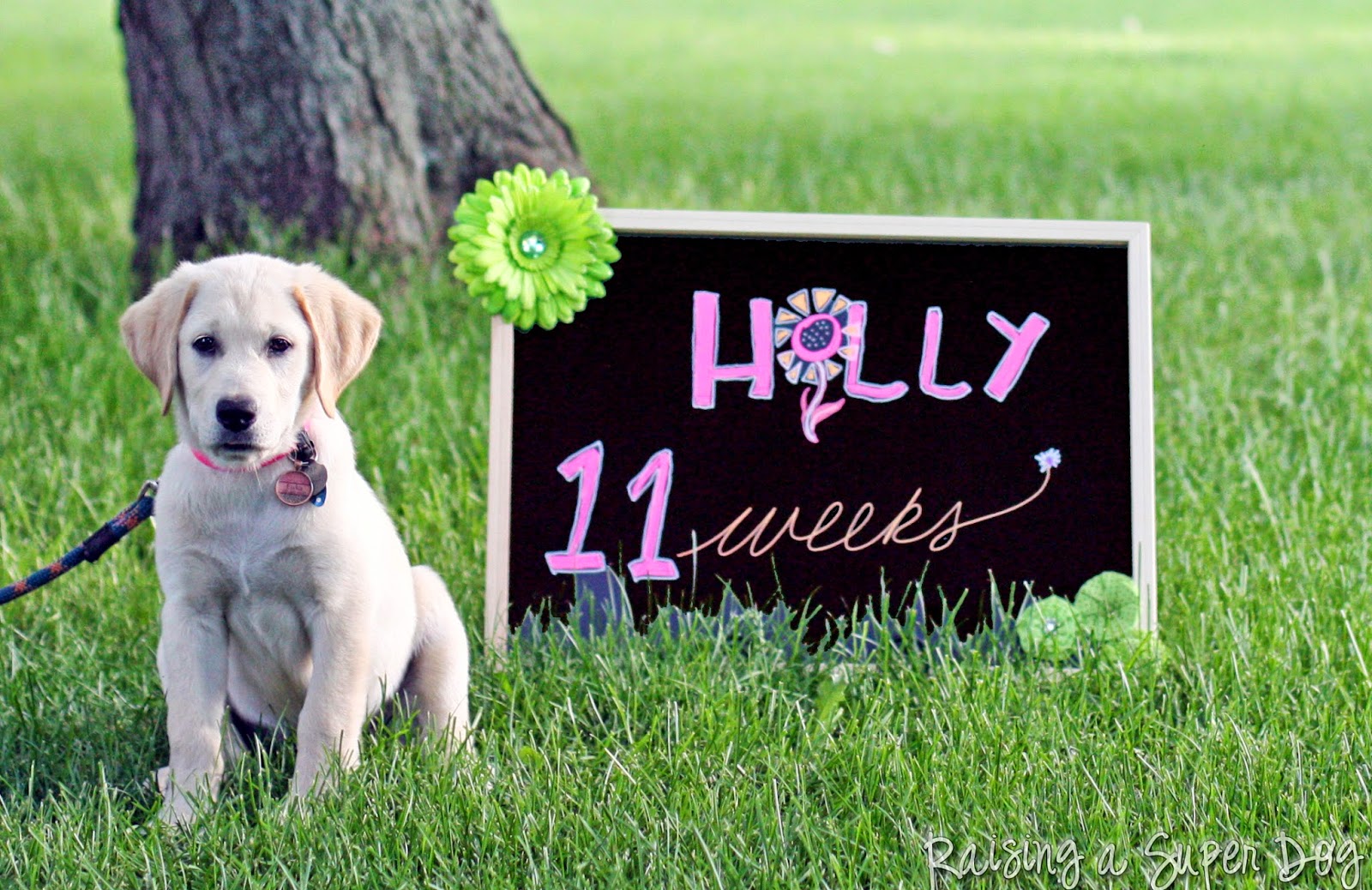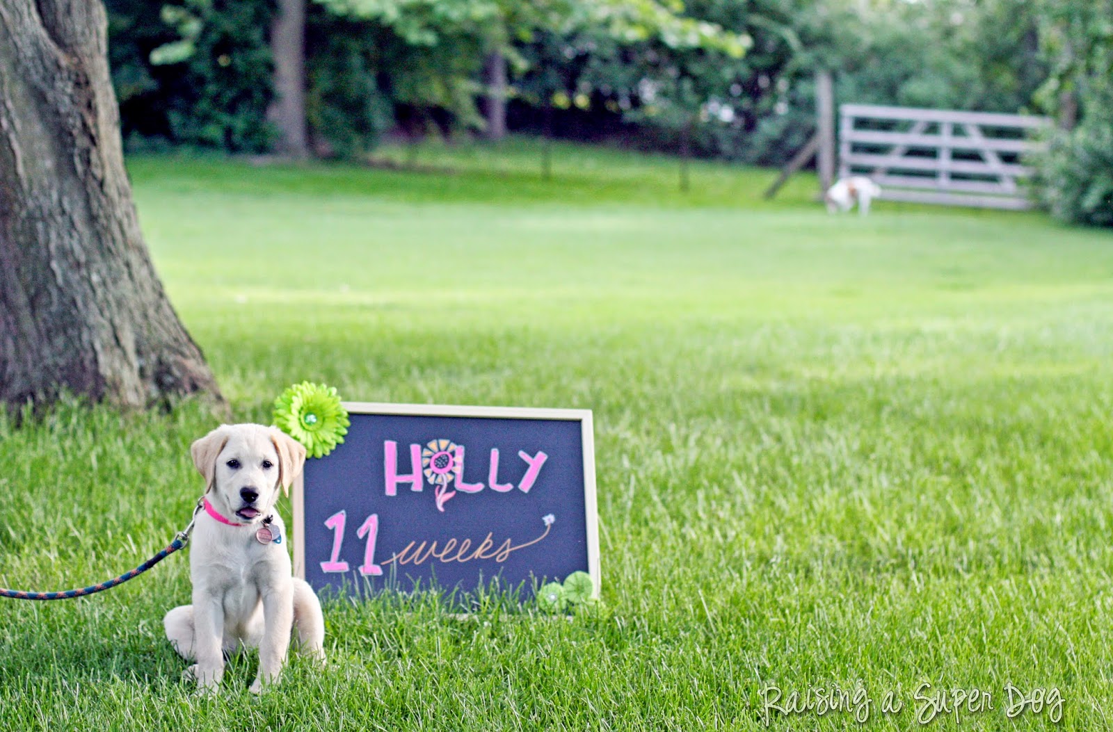Here’s our Miss Holly at her Eleven Week photo shoot, looking all sassy and ready to prey on another inappropriate choice to chew upon in the great outdoors.