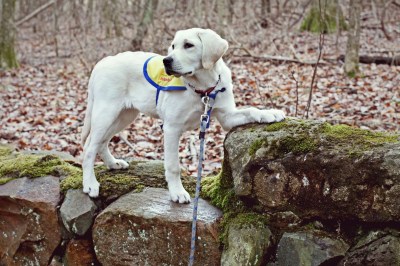 Now this was years before my puppy raising experiences made me a master of making canine bio spills disappear before you can blink twice. Think …think … what to do, but the obvious? Yes! I overturn a trash can, pull out the plastic garbage bag and just go to town, scooping up the most heinous part.