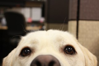 All that stuff you hear about dogs lowering blood pressure, providing a calming presence and being therapeutic just by the good luck of being a dog … it’s all true. Our campus is ridiculously huge. Really, people get lost just trying to find a conference room. Still, we have folk stop by to spend a moment with Micron and they don’t work anywhere within a quarter mile of my cube.